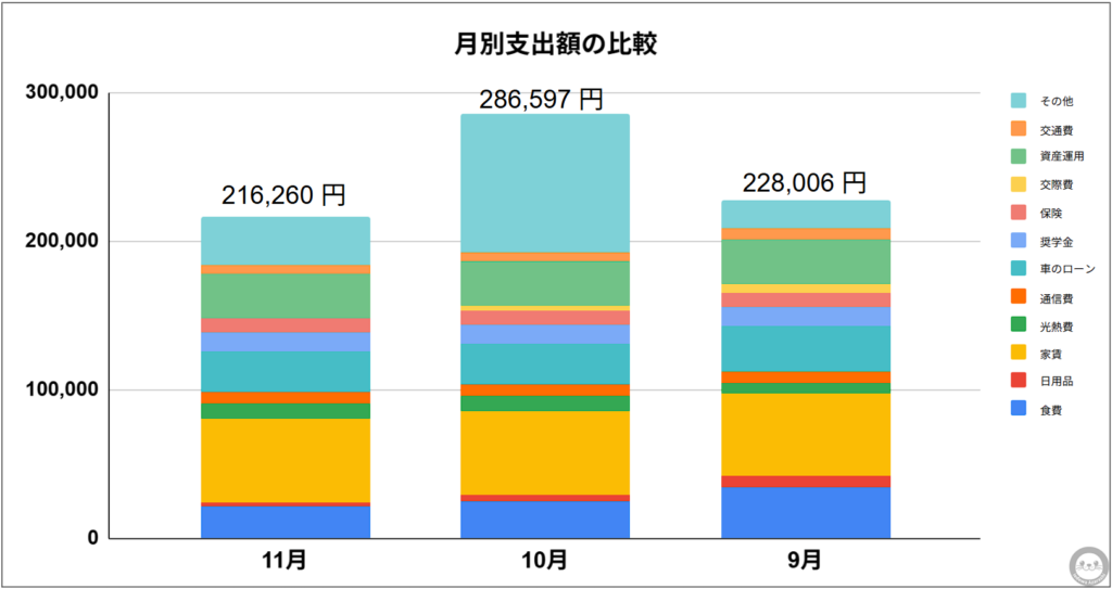 月別支出の欄でもありますが、だいぶ9月の水準に近づけることができたのではないかと考えています。
