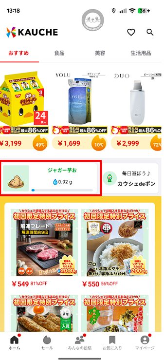お買い物アプリ『カウシェ』のアプリ内で遊べる“育成ゲーム型ポイ活コンテンツ”です。