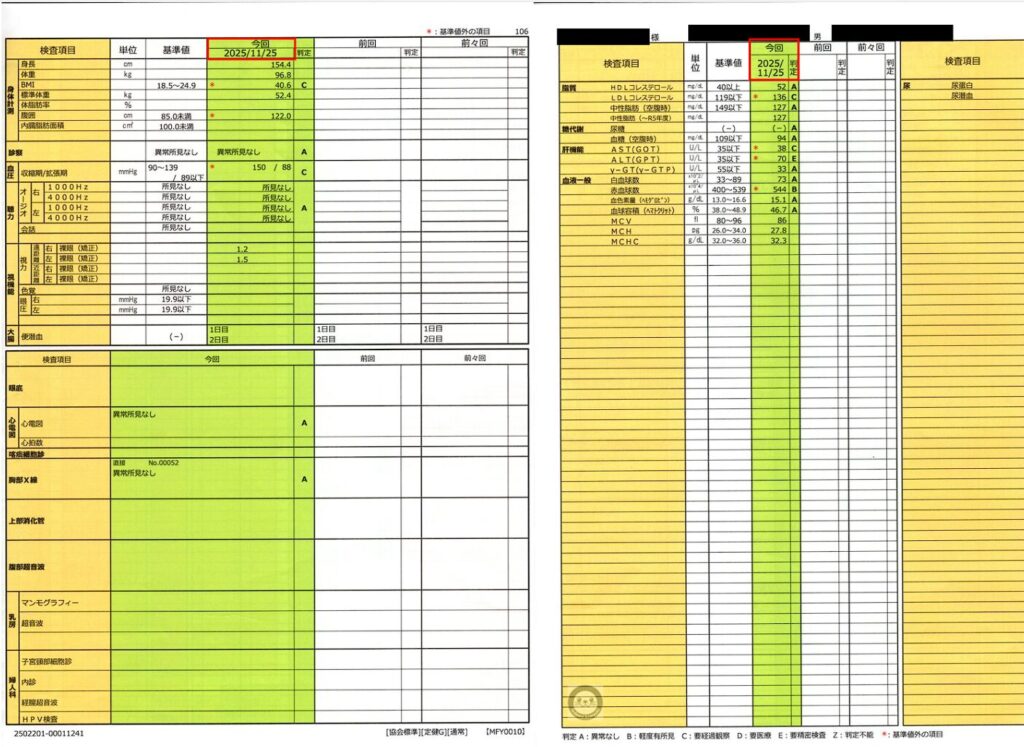 実際の健康診断の結果はこちらになります。